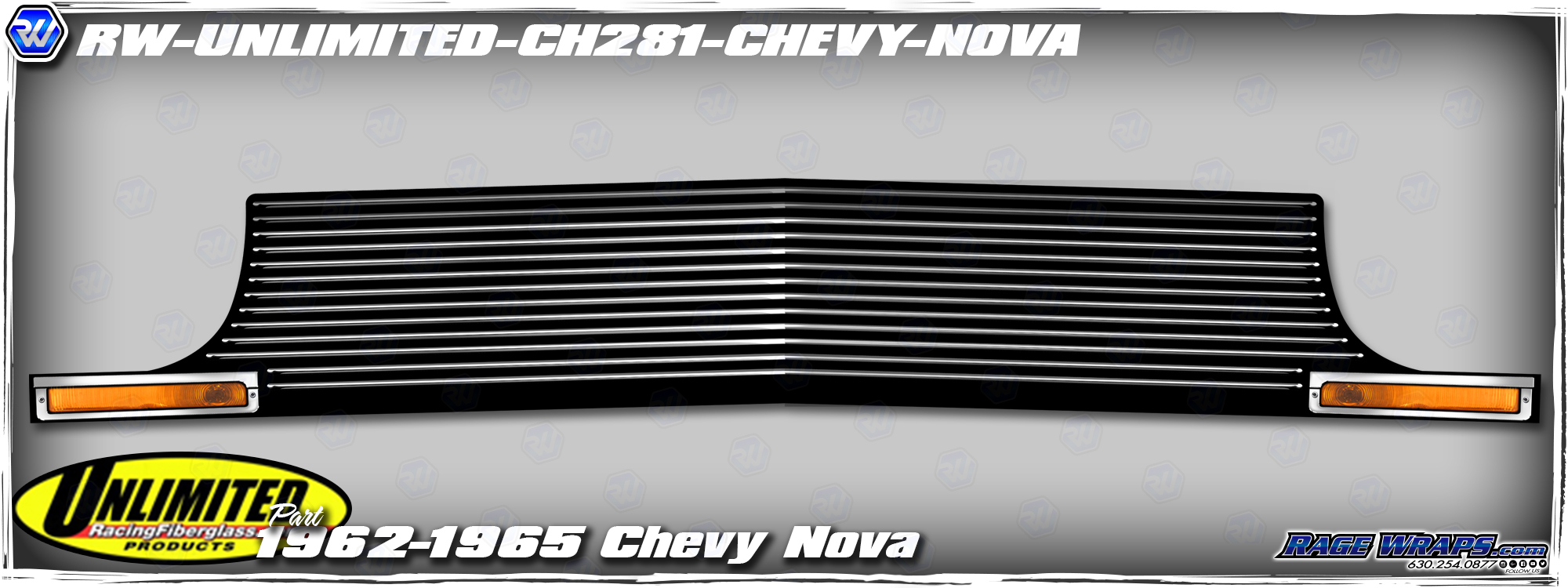 This front end grill kit fits only Unlimited Fiberglass part number CH-281 Chevy Nova only. If you don’t see what you have here, give us a call and we will create one for you.